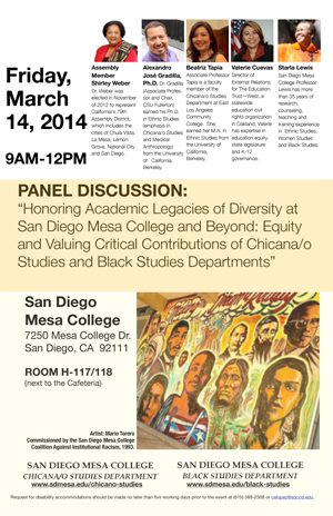 On Thursday, March 20 the Mesa College Chicana/o Studies Department will unveil and dedicate the Gracia Molina de Pick Glass Gallery and present their third annual Gracia Molina de Pick Feminist Lecture Series. The glass gallery and lecture series are named after the co-founder of Mesa’s Chicana/o Studies Department.